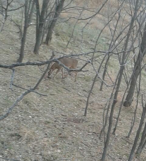 p.s. Pictured are Blue the pheasant-finding-machine, and a small buck that fed under my stand…….