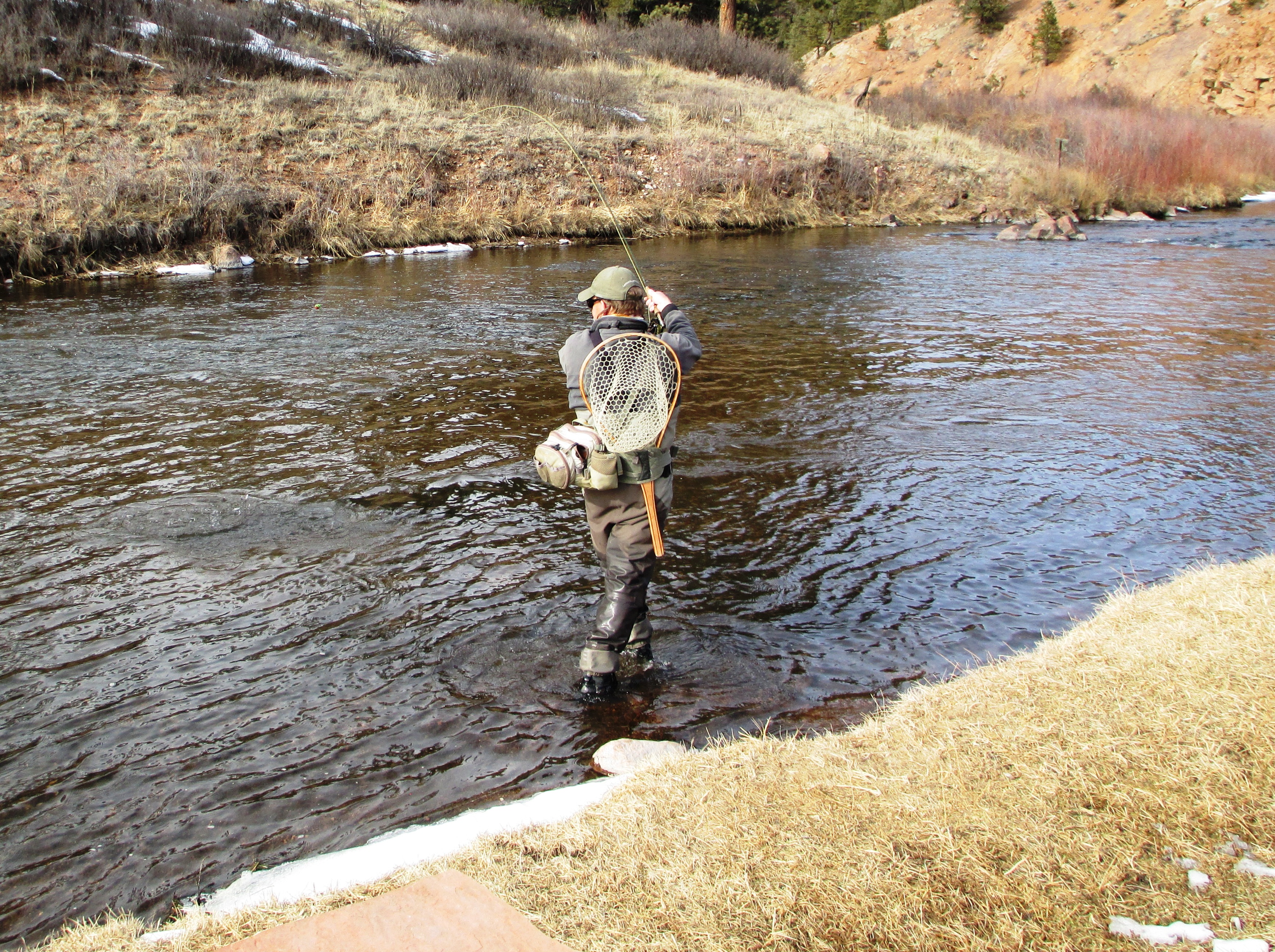 The Eagle River has some shelf ice up high, and downstream you’ll find smaller amounts. The lower river has been checking in at about 38 degrees at ten in the morning, and warms up to about 41 degree on full sun days. Midges are coming off, and I (and the fish) are already beginning to look for Blue-Winged Olives. Not a bad idea to throw a pink San Juan, Black Soft Hackled PT, and a Buttcrack Baetis in that order, if you’re so inclined. Other combinations will work equally as well as long as depth and speed are dialed in. Go low and slow.