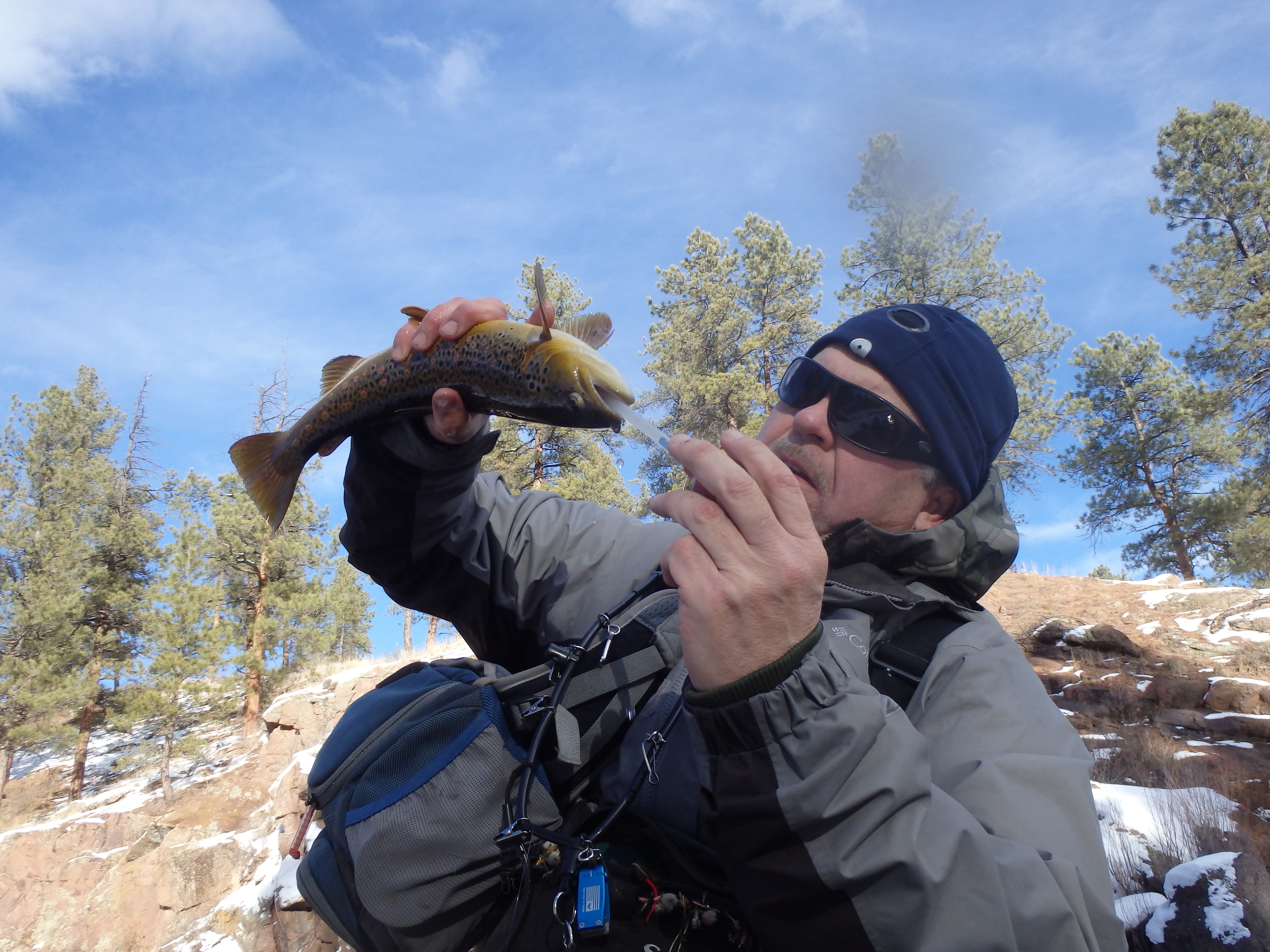 Scott Thompson pumping a fish in January.